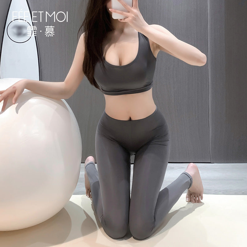 Seductively sculpted and irresistibly soft, the Fée et Moi Ice Silk Open-Back Cheeky Yoga Leggings offer a provocative twist on fitness fashion. Designed with a contour-hugging silhouette and made from breathable ice silk fabric, these leggings enhance every curve—especially at the hips. The daring open-back design boldly reveals the buttocks, turning up the heat for your private moments or bold boudoir styling.