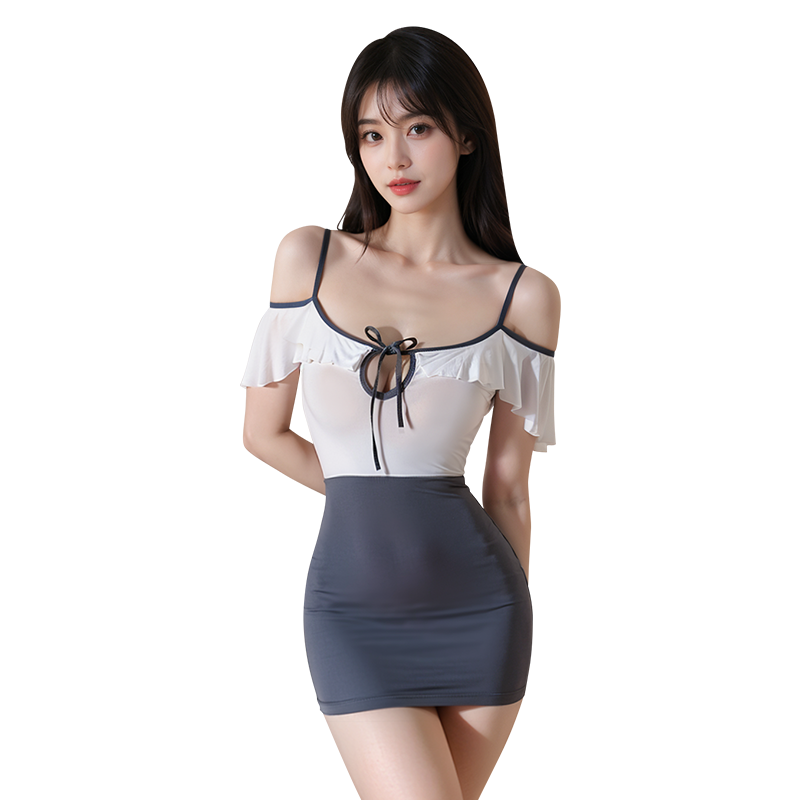 The Fée et moi Off-Shoulder Lotus Edge Mini Dress is a romantic and sultry lingerie piece that blends softness with allure. Featuring a ruffled off-shoulder neckline and a body-hugging mini skirt, this outfit contours your curves while adding a delicate touch of femininity. Crafted from smooth ice silk fabric with gentle elasticity, it’s breathable, figure-flattering, and perfect for intimate occasions or boudoir moments.