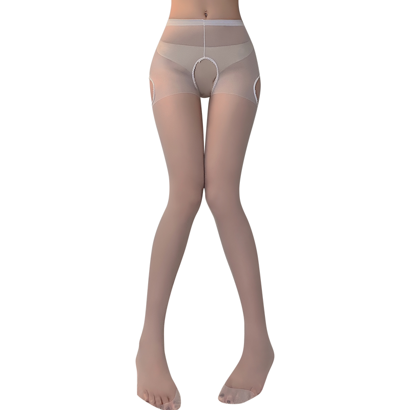 The Fée et moi Open Crotch Four-Way Lace-Trimmed Pantyhose are designed to elevate seduction with a daring twist. Featuring fully open crotch panels and delicate lace trim accents, these ultra-stretchy sheer tights provide an alluring look from every angle. The snug waistband and smooth fit sculpt your legs and hips, while the strategic cutouts promise easy access and provocative appeal.