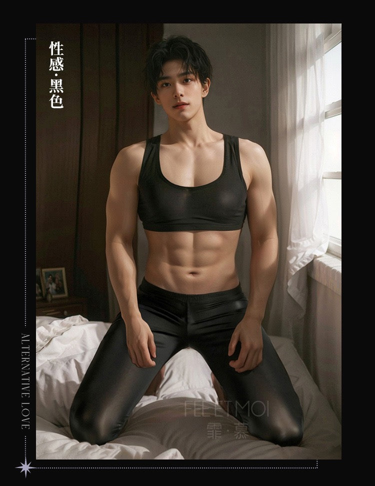 Unleash your seductive side with this men's sexy sheer desire costume set. Featuring a cropped backless tank top and zipper-front pouch leggings, this outfit is designed for bold confidence and bedroom appeal. The soft, stretchy fabric hugs your body for a flattering silhouette, while the semi-transparent finish teases just enough. Available in black and grey, it's the perfect outfit for intimate play or roleplay fantasies.