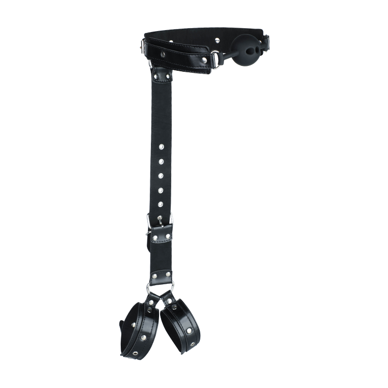 - Includes: 1 x silicone ball gag + adjustable back strap + pair of wrist cuffs