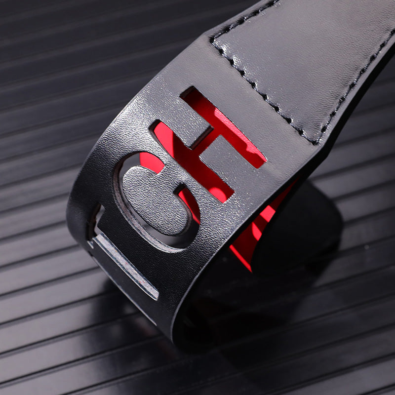 - Design: Red-letter "BITCH" imprint cutout