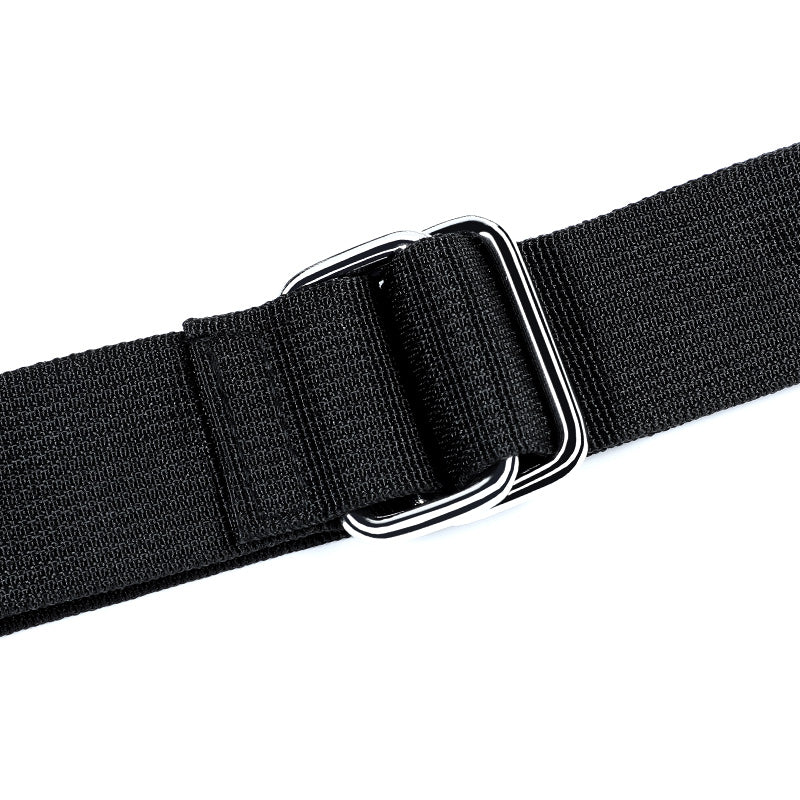 - Materials: Woven strap, steel, and foam padding